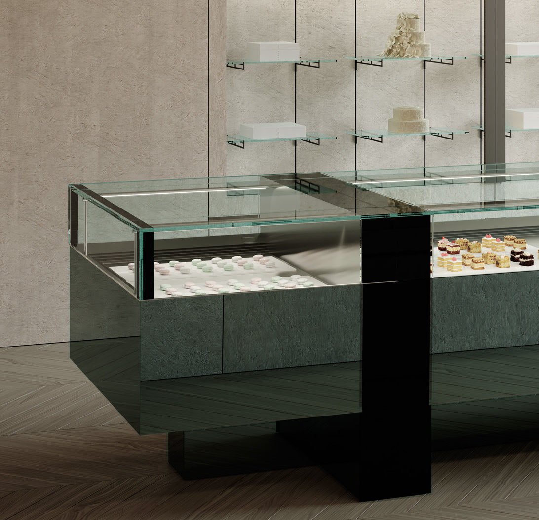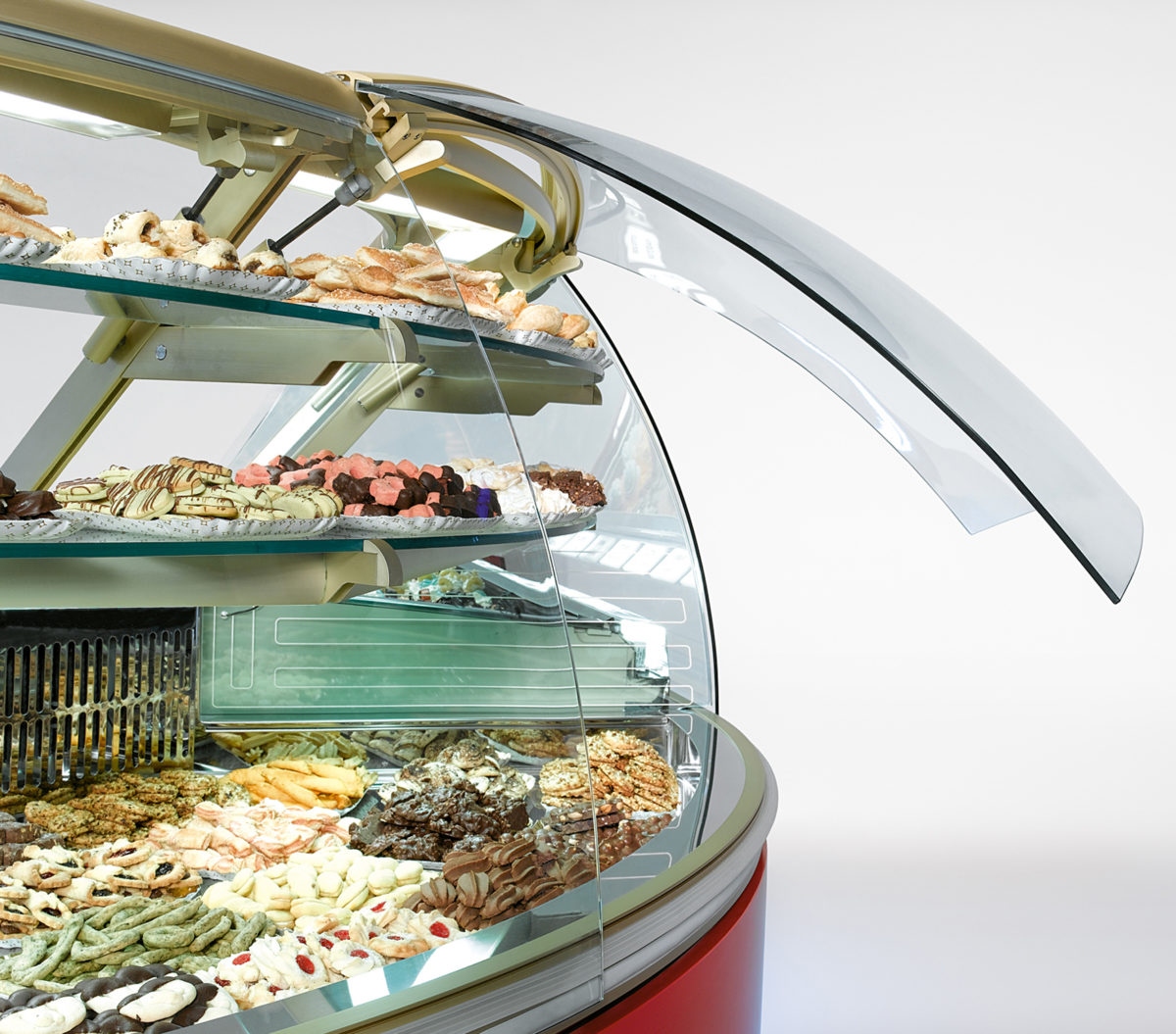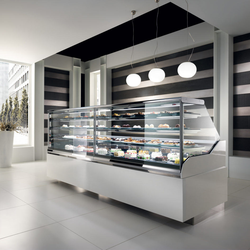 Vetrine modulari, canalizzabili per pasticceria, gelateria, pralineria, gastronomia calda e fredda, panetteria, pizza. La serie è stata progettata con grande cura dei particolari: le speciali centine terminali assicurano la perfetta canalizzazione dei moduli, tutte le vasche sono monolitiche e rivestite in acciaio lucido con bordi interni raggiati per una corretta pulizia della vasca.