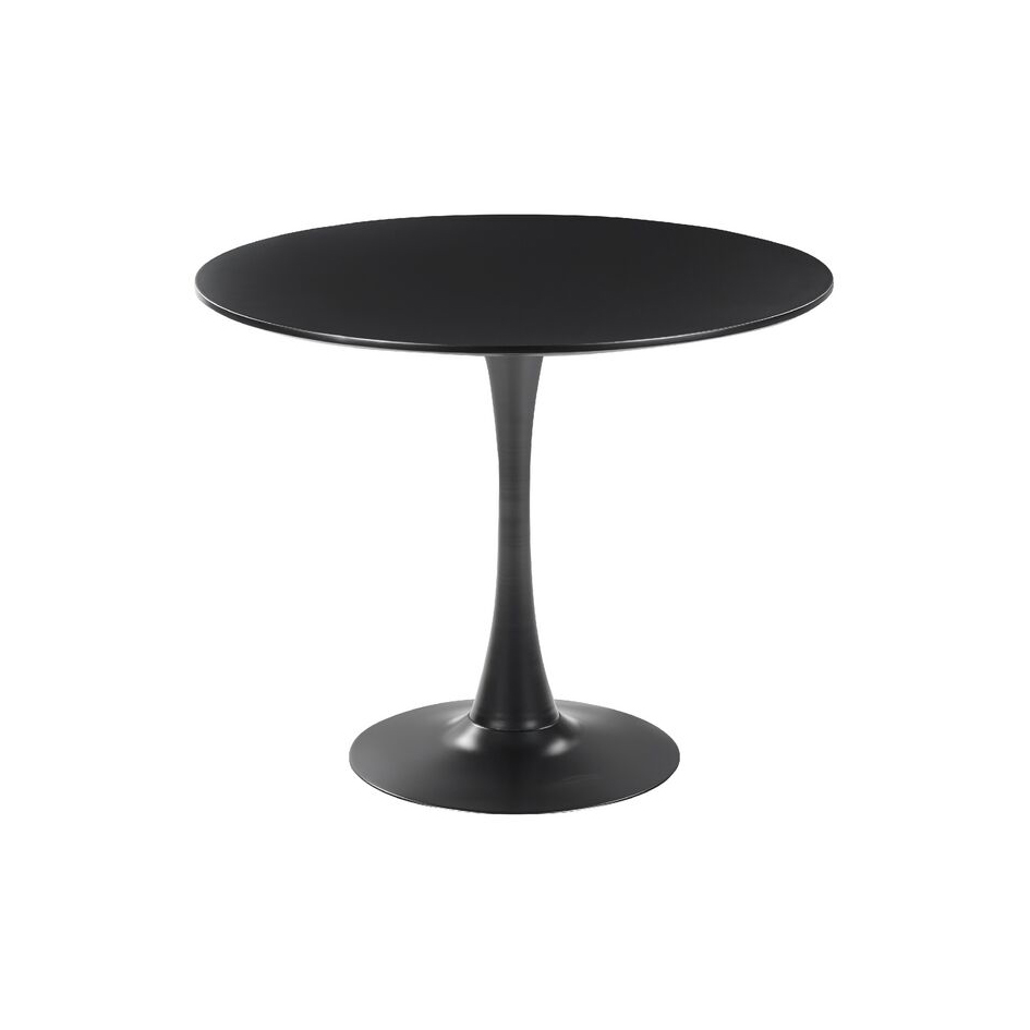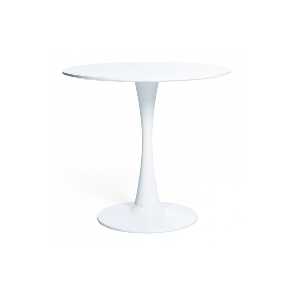Tavolo tondo tulip due posti. Il piede vintage, rivestito con vernice epossidica, conferisce grande resistenza, soprattutto in caso di urti durante gli spostamenti o di movimenti bruschi. Piano dallo spessore di 2 cm in MDF laccato, disponibile nella rifinitura bianco e nero. Dimensioni (cm): Alt. 74, diametro 70