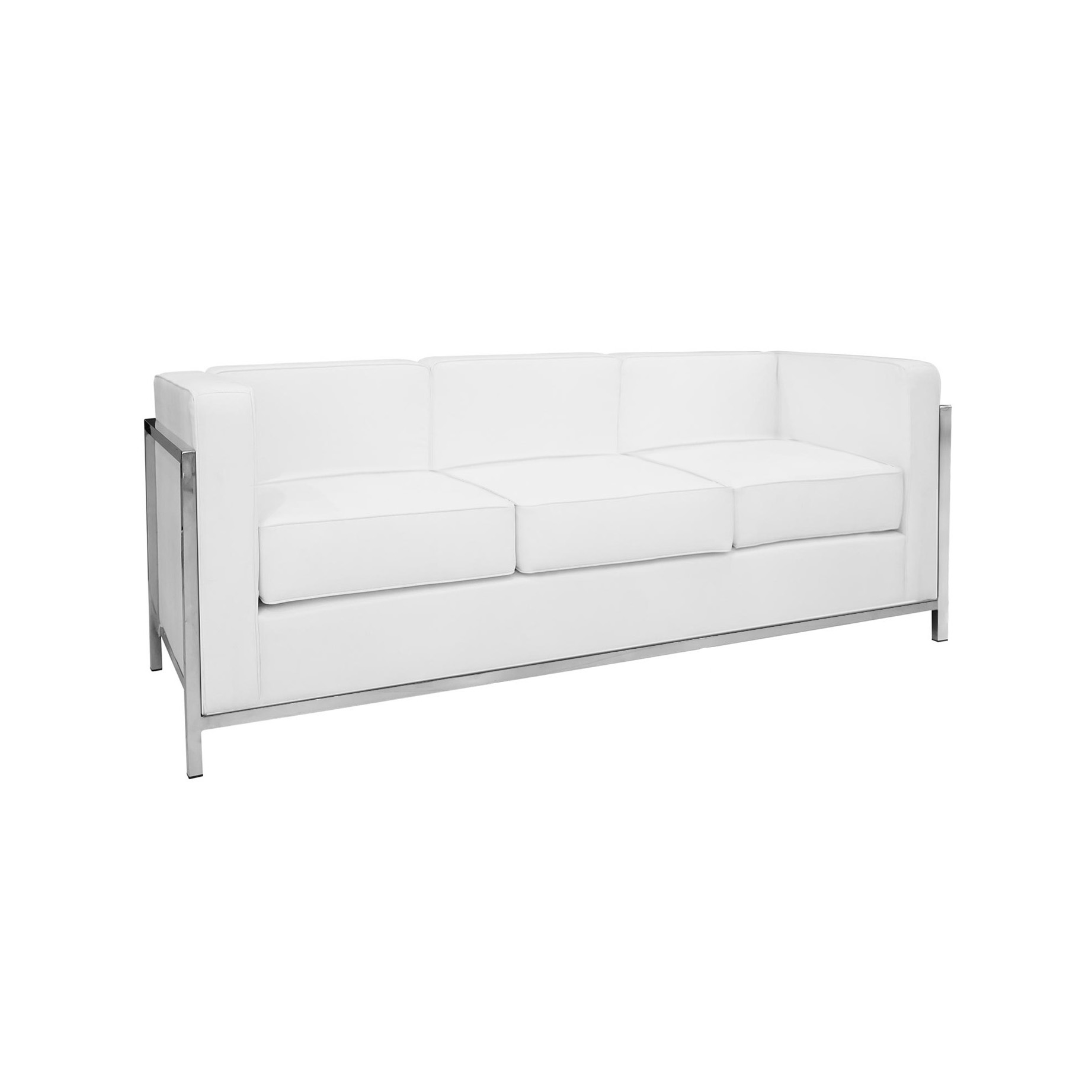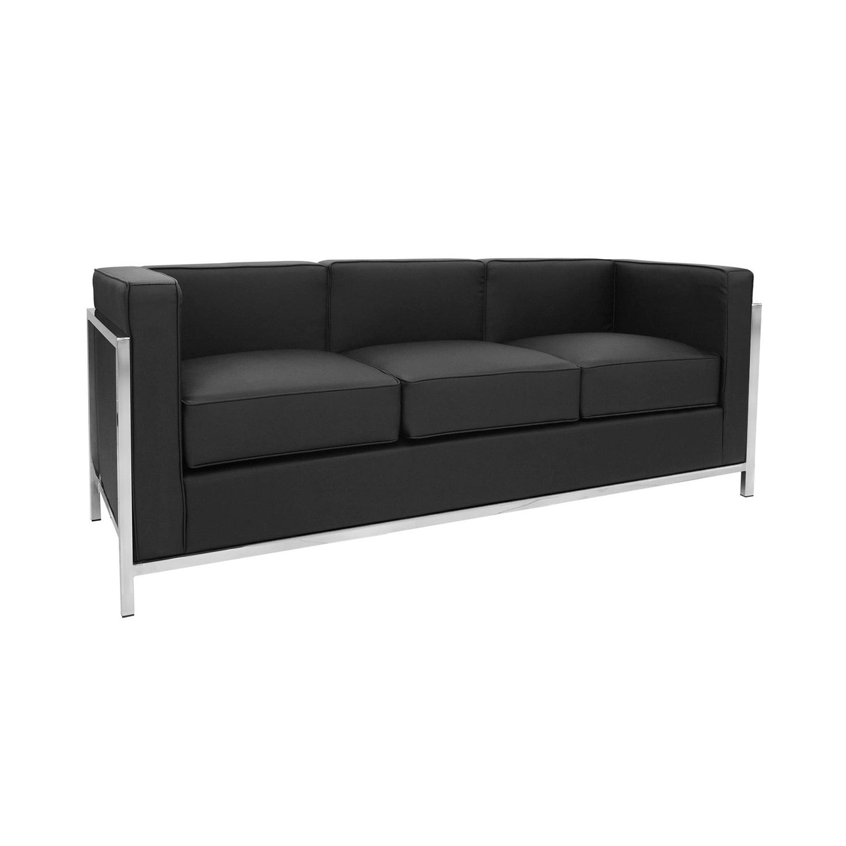 Divano tre posti ideale per ambienti soggiorno ed ufficio, perfetta sintesi di forma e funzione. Struttura in acciaio inox, rivestimento anteriore in pelle, posteriore in ecopelle, disponibile nei colori bianco e nero. Dimensioni L180 x P70 x H68 cm