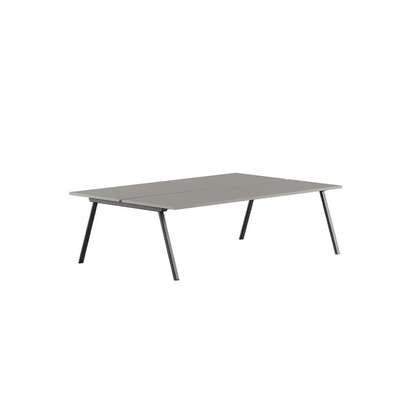 Tavolo meeting (L. 180 cm.) realizzato con struttura in metallo verniciato e piano in laminato o compactop in diverse varianti di colore con soluzione passacavi in metallo. Struttura di sostegno con forma a cavalletto per essere snelle e resistenti.