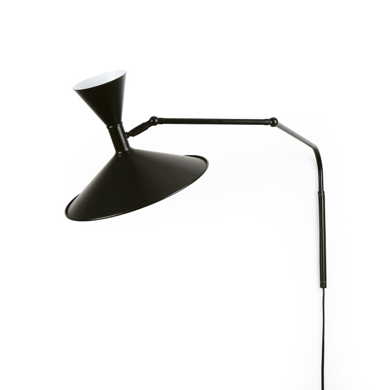 Replica lampada Marsiglia di Le Corbusier con struttura in alluminio, braccio snodabile con emissione diretta verso il basso e indiretta verso l’alto, rifinitura colore nero.