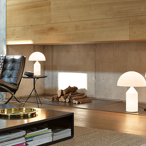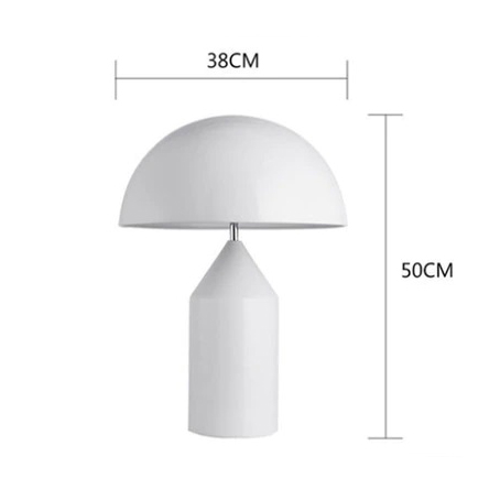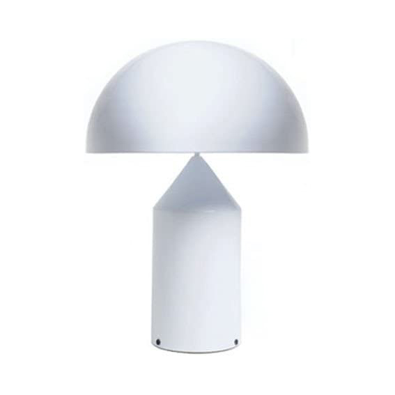 Replica della lampada Atollo ideata nel 1977 da Vico Magistretti. Le forme geometriche che la compongono, il cilindro, il cono e la semisfera, hanno dato vita ad un prodotto decorativo ed essenziale allo stesso tempo, slegato dal periodo storico dalle mode del momento e divenuto ormai a pieno titolo una delle icone del design italiano, vincendo il Compasso d’Oro nel 1979. Struttura in metallo colore bianco. Dimensioni altezza 50 cm, diametro semisfera 38 cm