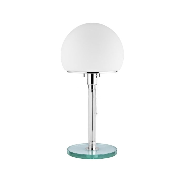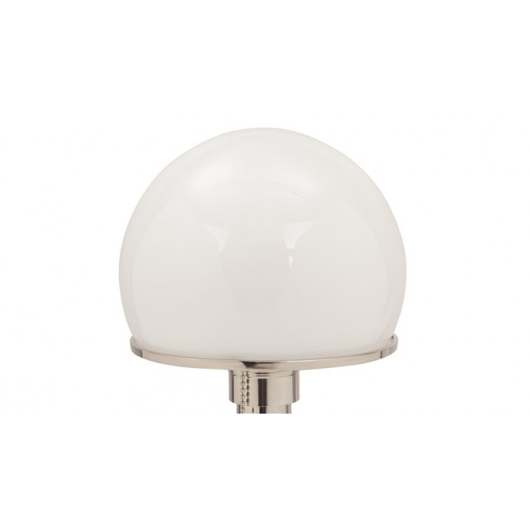 Replica della lampada da tavolo MT 8, nota anche come lampada da tavolo Bauhaus, la lampada da scrivania diffonde una luce gradevole e può essere corredata di lampade LED oppure a risparmio energetico. Lampada in metallo, con un paralume di vetro opaco, una base rotonda e uno stelo di vetro attraverso il quale si intravedeva il cavo elettrico. Dimensioni, altezza 36 cm , diametro 18cm.