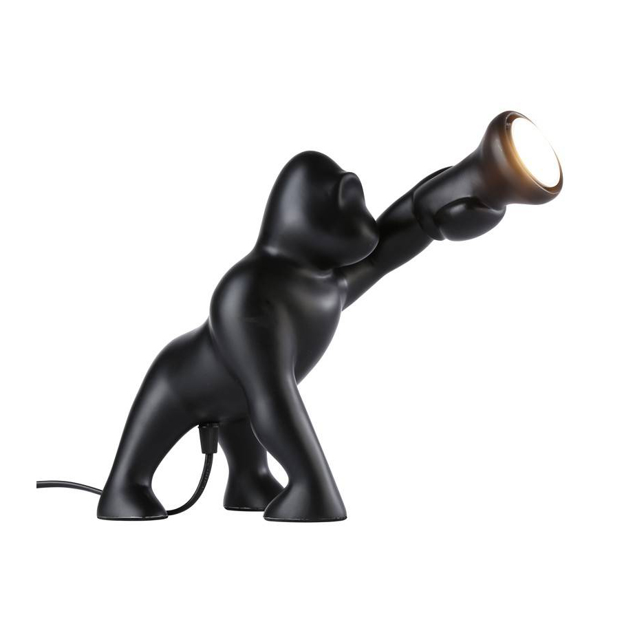 Lampada di design, elegante, dallo stile esotico. Tiene nella mano sinistra una lanterna con presa GU10 integrata di potenza massima 3W. Lampada decorativa per qualsiasi ambiente interno, con grado di protezione IP20. Finitura colore nero opaco. Dimensioni: 300x180x160 mm.