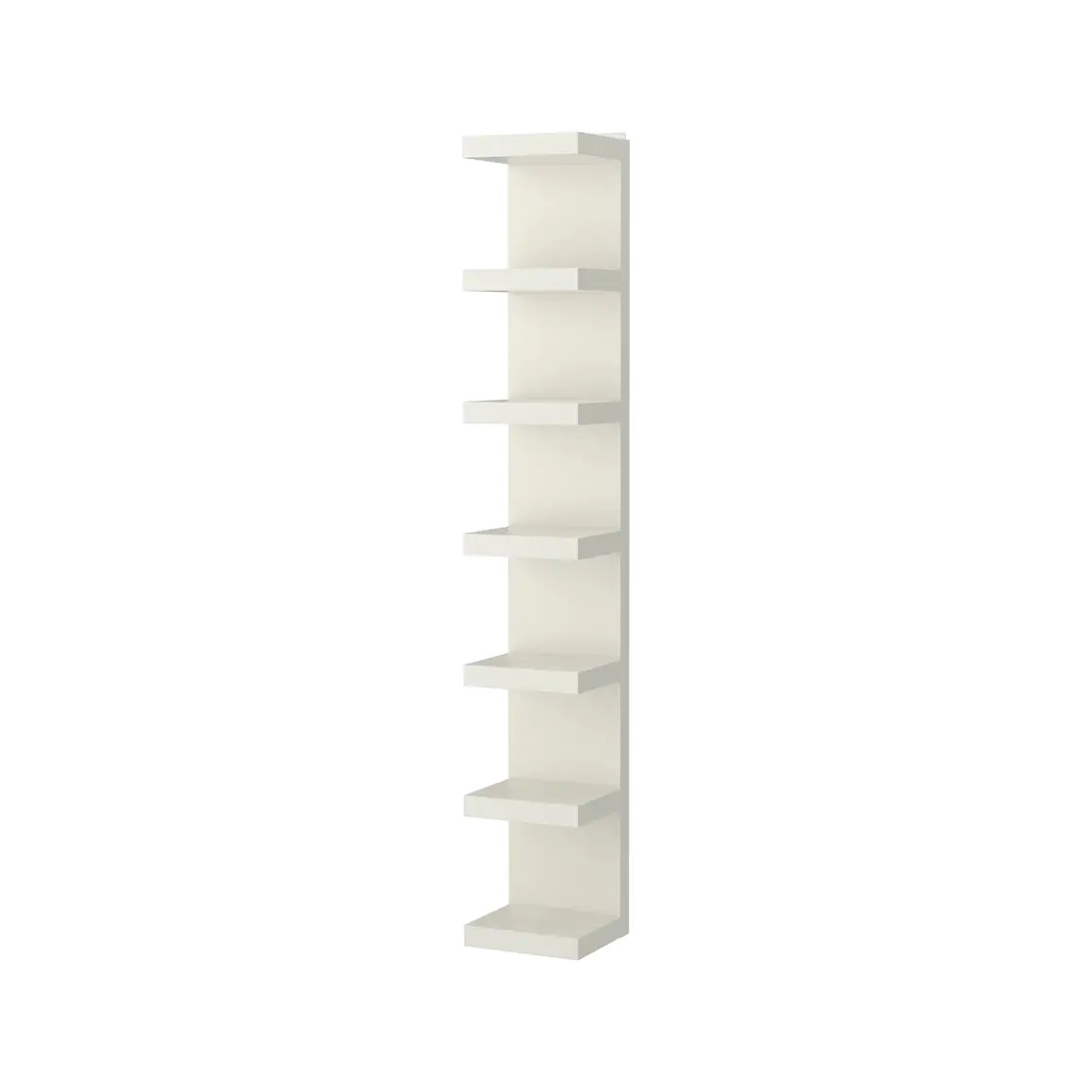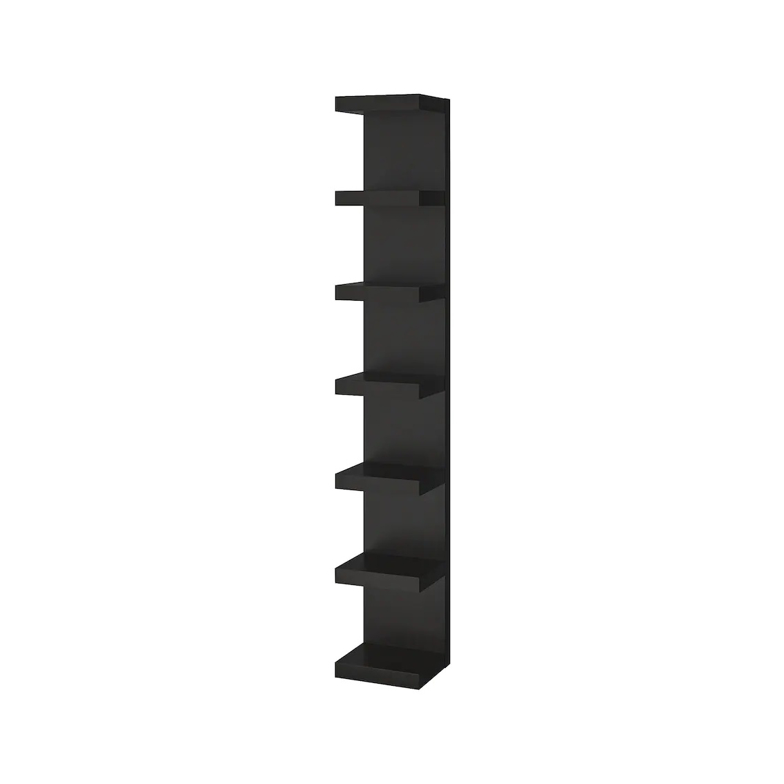 Libreria in legno tamburato caratterizzata da mensole poco profonde ma molto capienti, permette di usare le pareti in modo funzionale, occupando poco spazio nella stanza. Si può fissare alla parete orizzontalmente o verticalmente, quando lo scaffale è fissato alla parete in posizione orizzontale, il carico massimo totale è di kg 25, fissato verticalmente, il carico massimo è di kg 3 per mensola. Dimensioni largh. 30 cm, prof. 28 cm, alt. 190 cm. Rifinita con vernice protettiva o impiallacciatura nei colori bianco, nero, rovere.