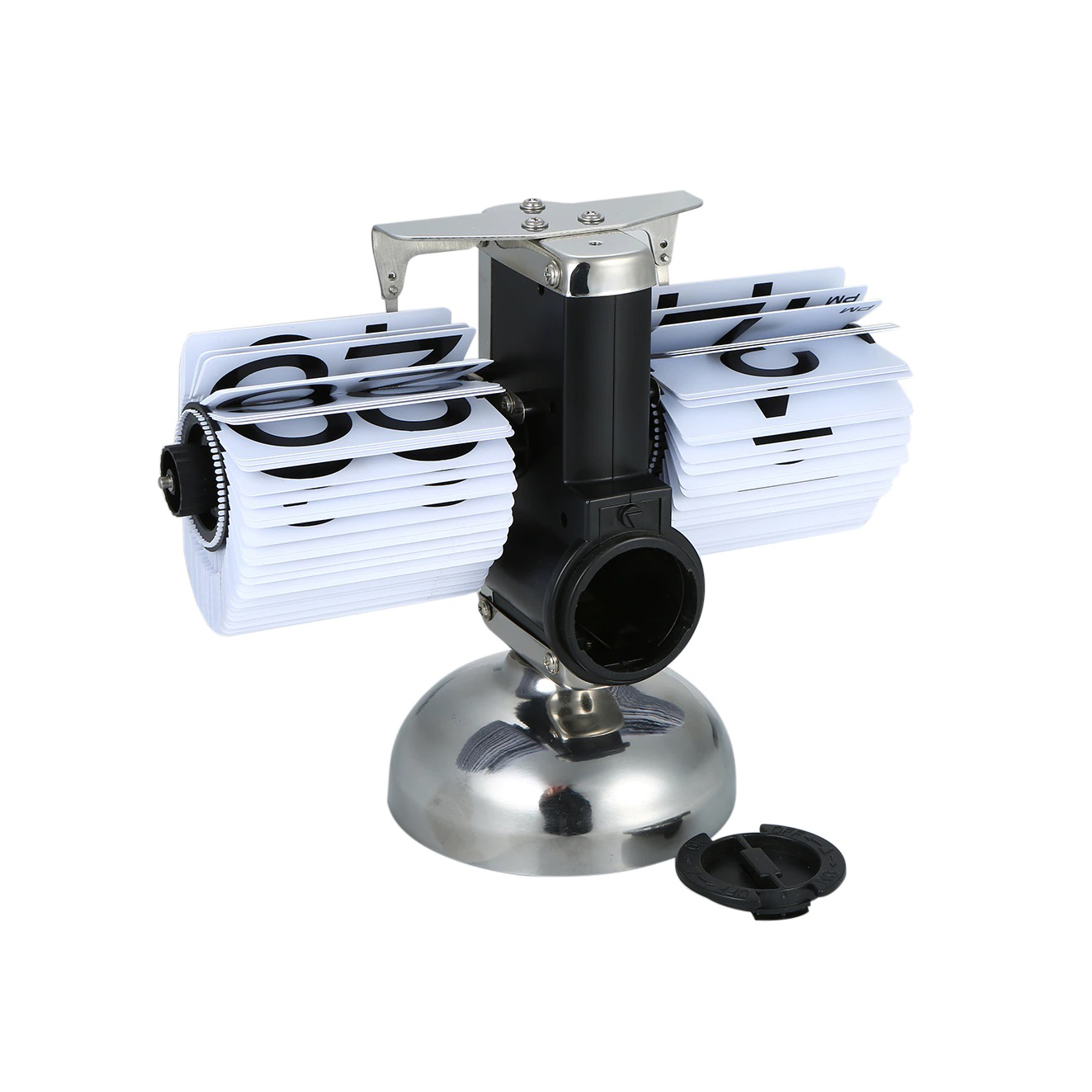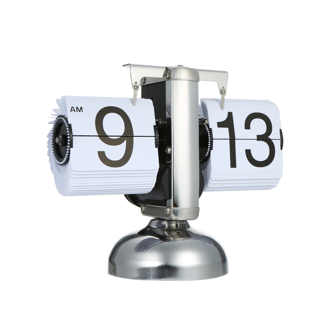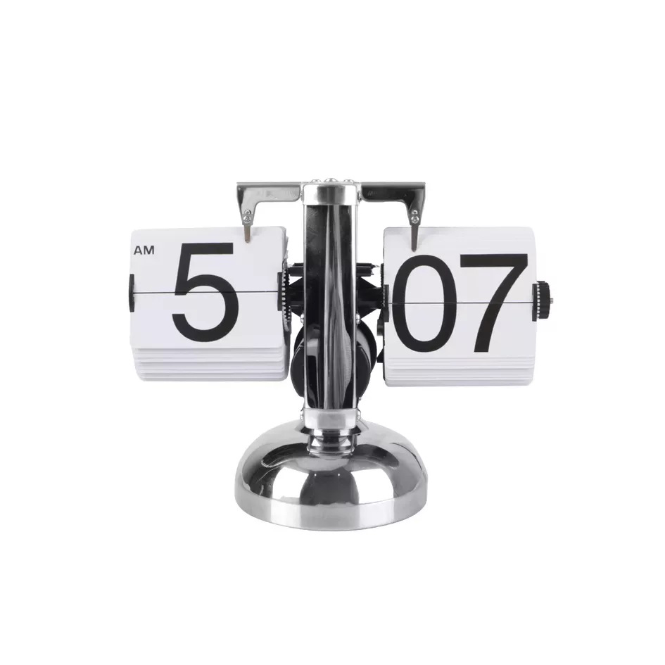 Orologio da tavolo vintage in metallo colore cromo, con flip down in acrilico colore nero