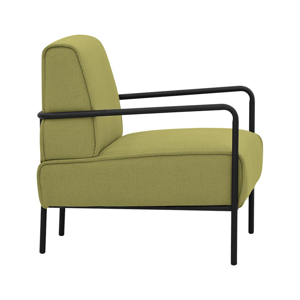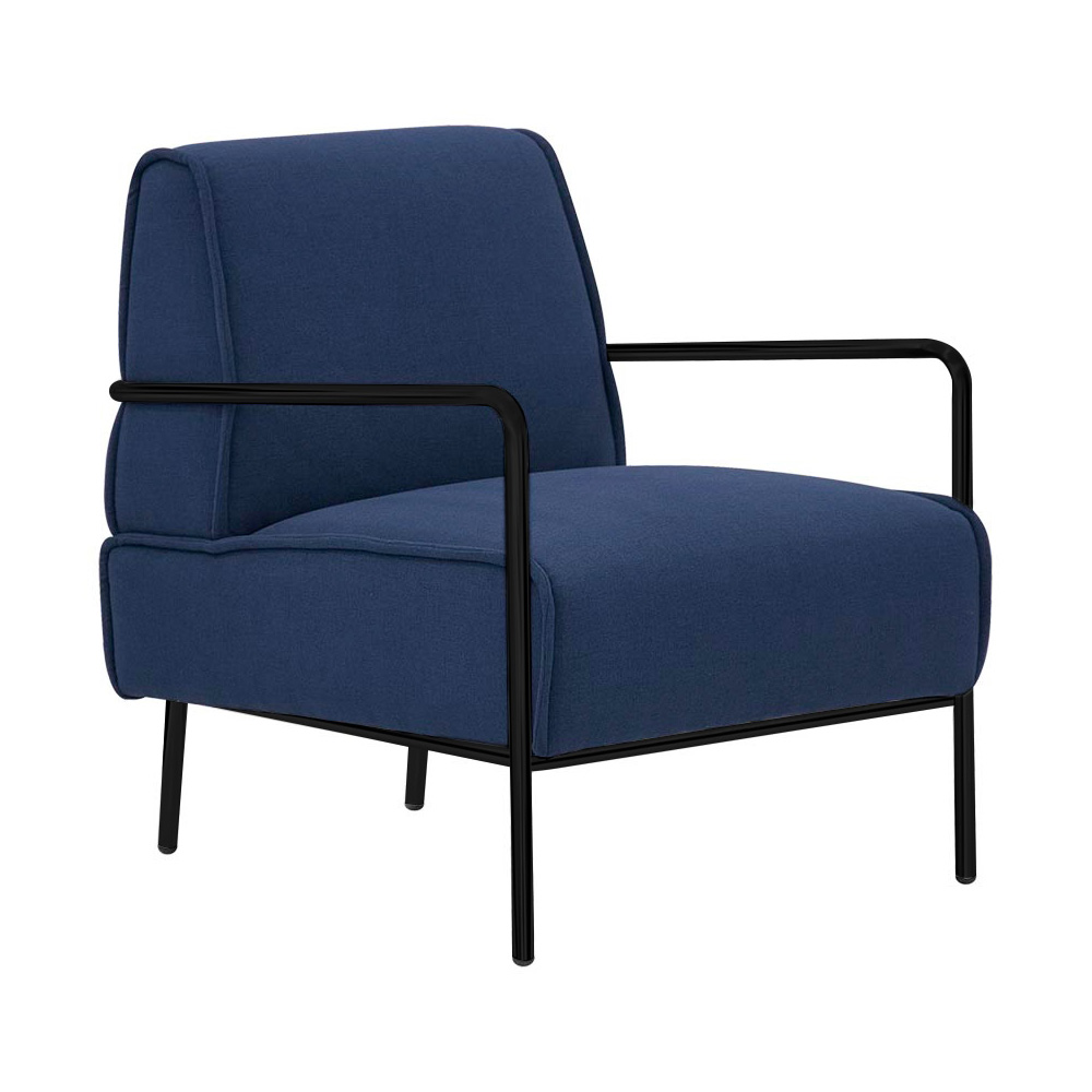 Poltrona con struttura in metallo verniciato, rivestimento in tessuto o in ecopelle. Dimensioni : L. 59 x P. 53 x H. 76 cm. Peso netto : 15,30 kg.