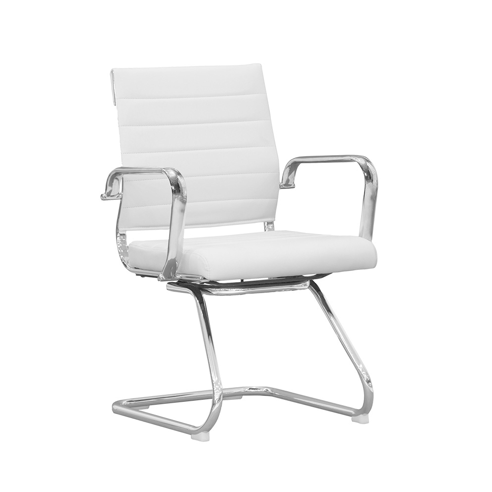 Poltrona con struttura in metallo cromato, seduta imbottita, rivestita in ecopelle, disponibile nelle rifiniture colore nero e bianco. Dimensioni, alt. 87,5cm, largh. 51cm, prof. 45 cm