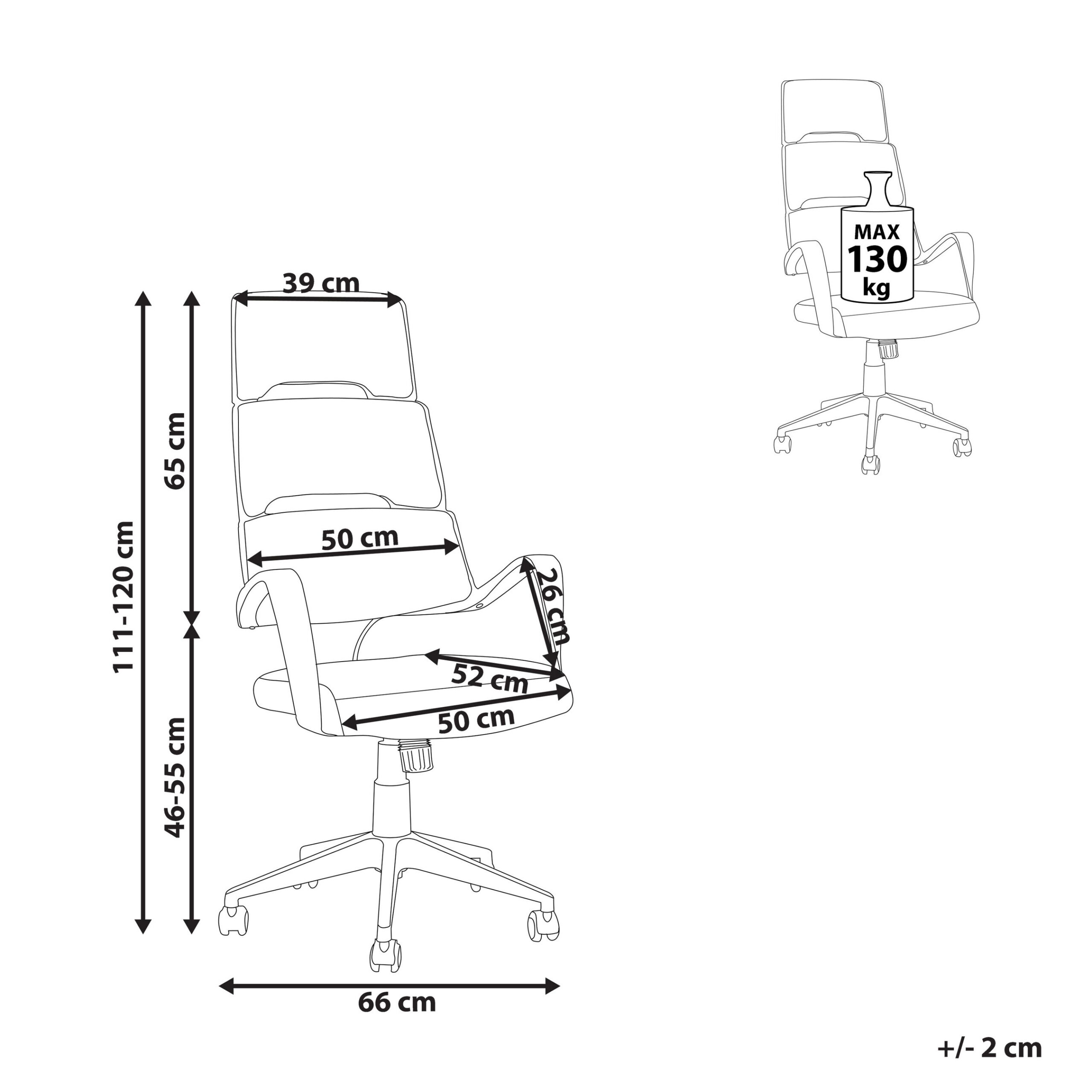 Poltrona girevole a 360° con funzione di inclinazione regolabile per un perfetto supporto lombare. Seduta trapuntata con imbottitura in schiuma e braccioli in pvc. Dotata di leva laterale per regolare l’altezza e trovare la posizione di lavoro perfetta. Rifinitura colore nero, nero, dimensioni (LxWxH) in cm: 50x52x111/120, altezza del sedile: 46-54
