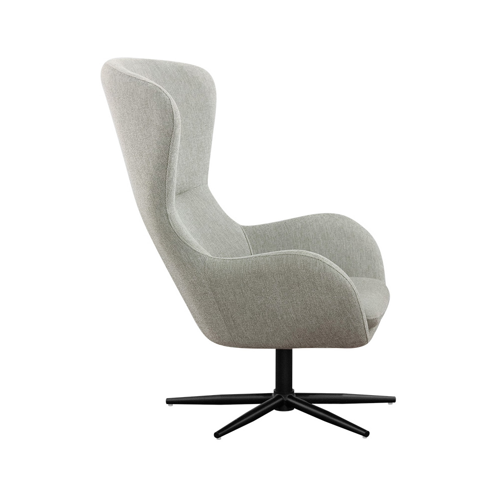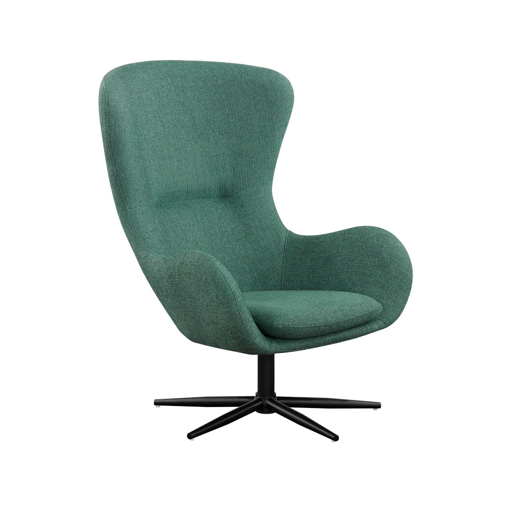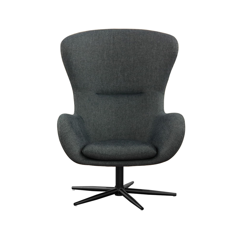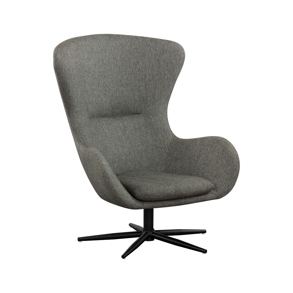 Poltrona con struttura girevole in metallo verniciato e rivestimento in tessuto.