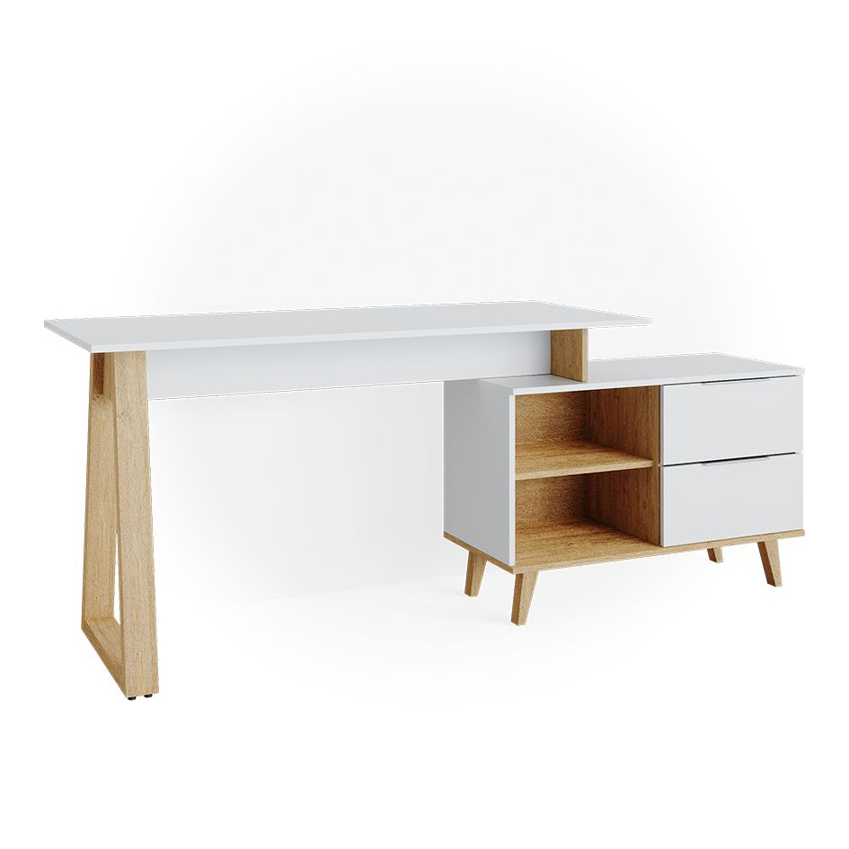 Scrivania con mobile cassettiera. Rifinitura piano del tavolo in resina melamminica, spessore 16 mm. Gambe in MDF con rifinitura colore faggio spessore 30 mm. Materiale corpo cassetti truciolato 16 mm e rifinitura in resina melaminica, ripiano inferiore, piedini, e mensola intermedia in faggio. Dimensioni tavolo: 138 x 77 x 60 cm (ampiezza x altezza x profondità). Dimensione del cassettone: 90 x 61 x 40 cm (ampiezza x altezza x profondità). Disponibile nei colori antracite e bianco. Peso scrivania: 15,05 kg. Peso cassettone: 25,25 kg