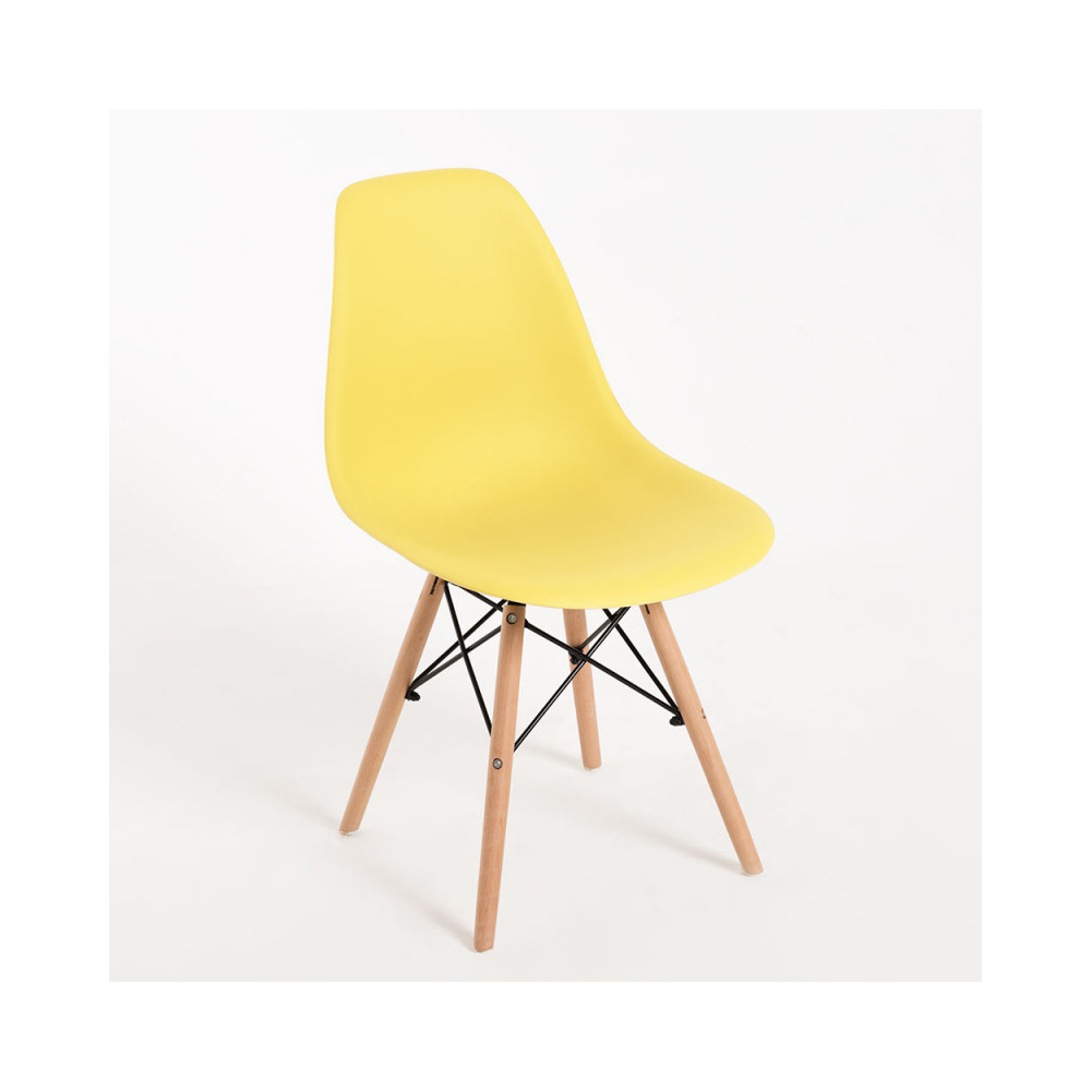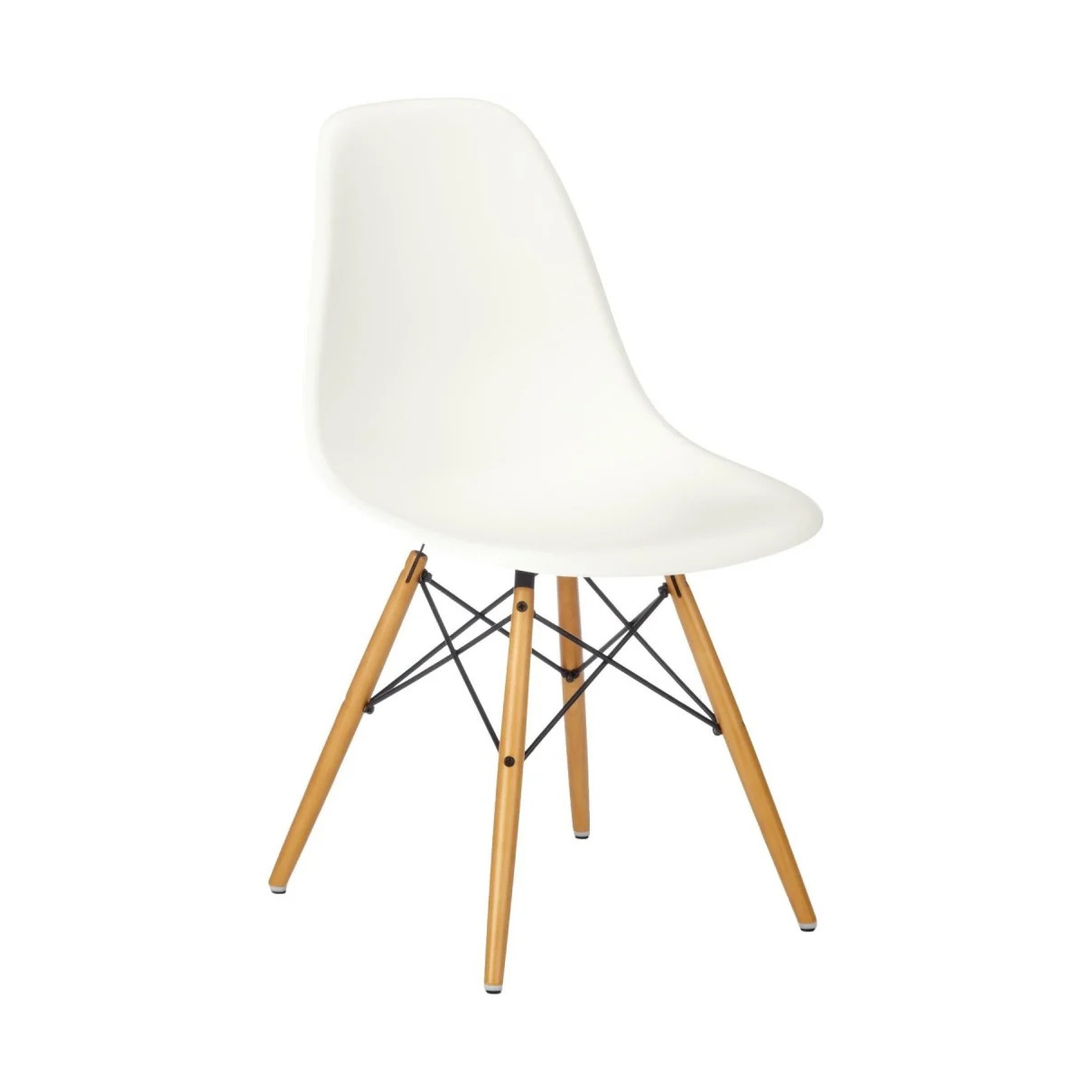 Replica della Chair DSW disegnata da Charles & Ray Eames con scocca realizzata in polipropilene. Disponibile in vari colori, con basamento non impilabile a quattro gambe in legno di frassino color miele e montanti in acciaio tubolare basic dark. La vasta disponibilità di colori ne consente l’utilizzo in vari ambienti, dalla sala da pranzo all’ufficio e al giardino.