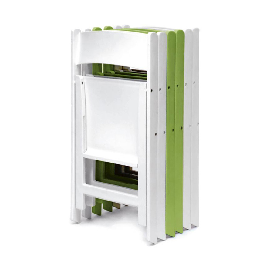 Sedia richiudibile con struttura in polipropilene con fibra di vetro nei colori bianco e verde.