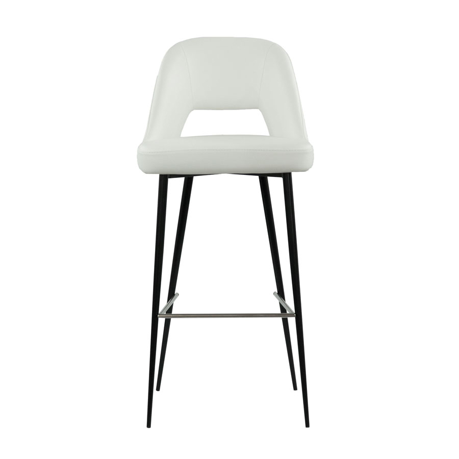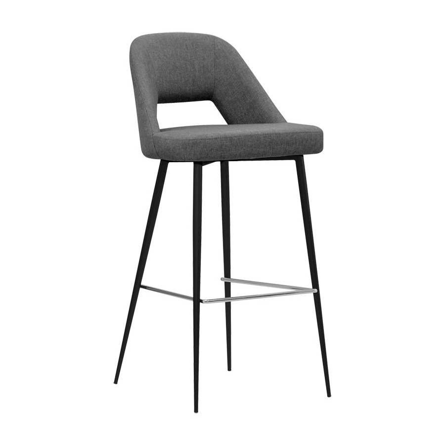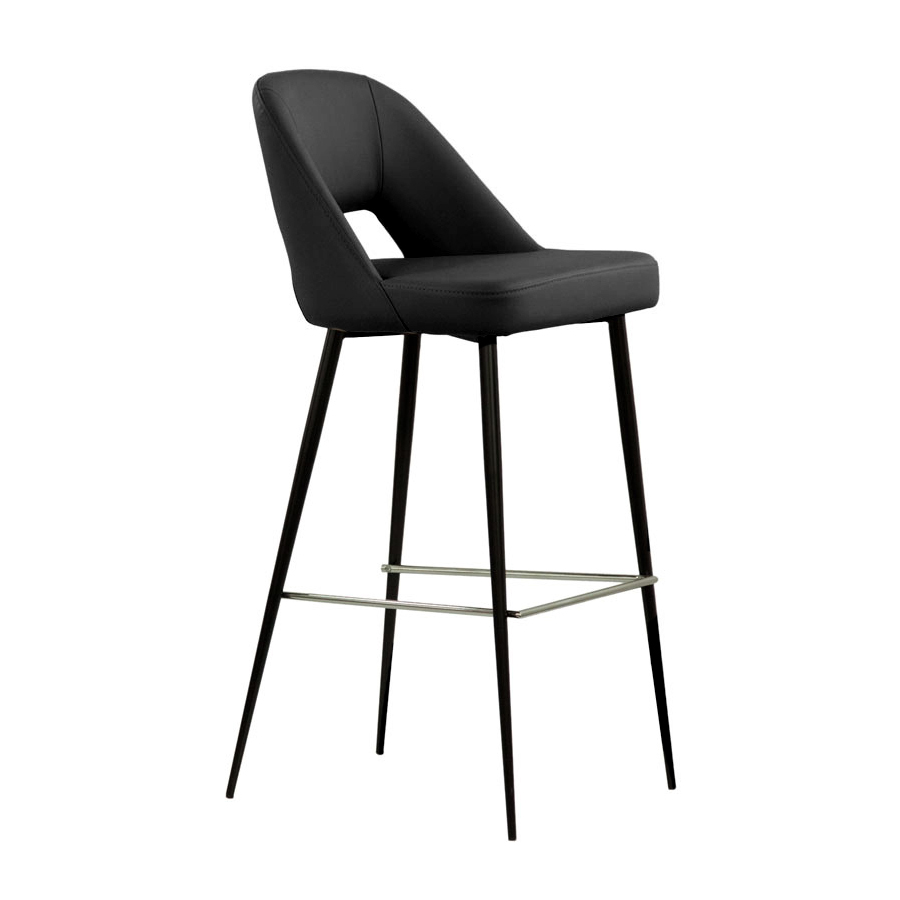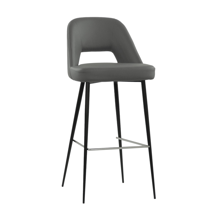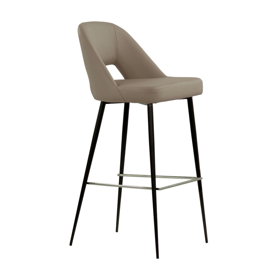 Sgabello disponibile con due diverse altezze di seduta h.66/h.76 con struttura in metallo verniciato e rivestimenti in tessuto o ecopelle in quattro varianti di colore.