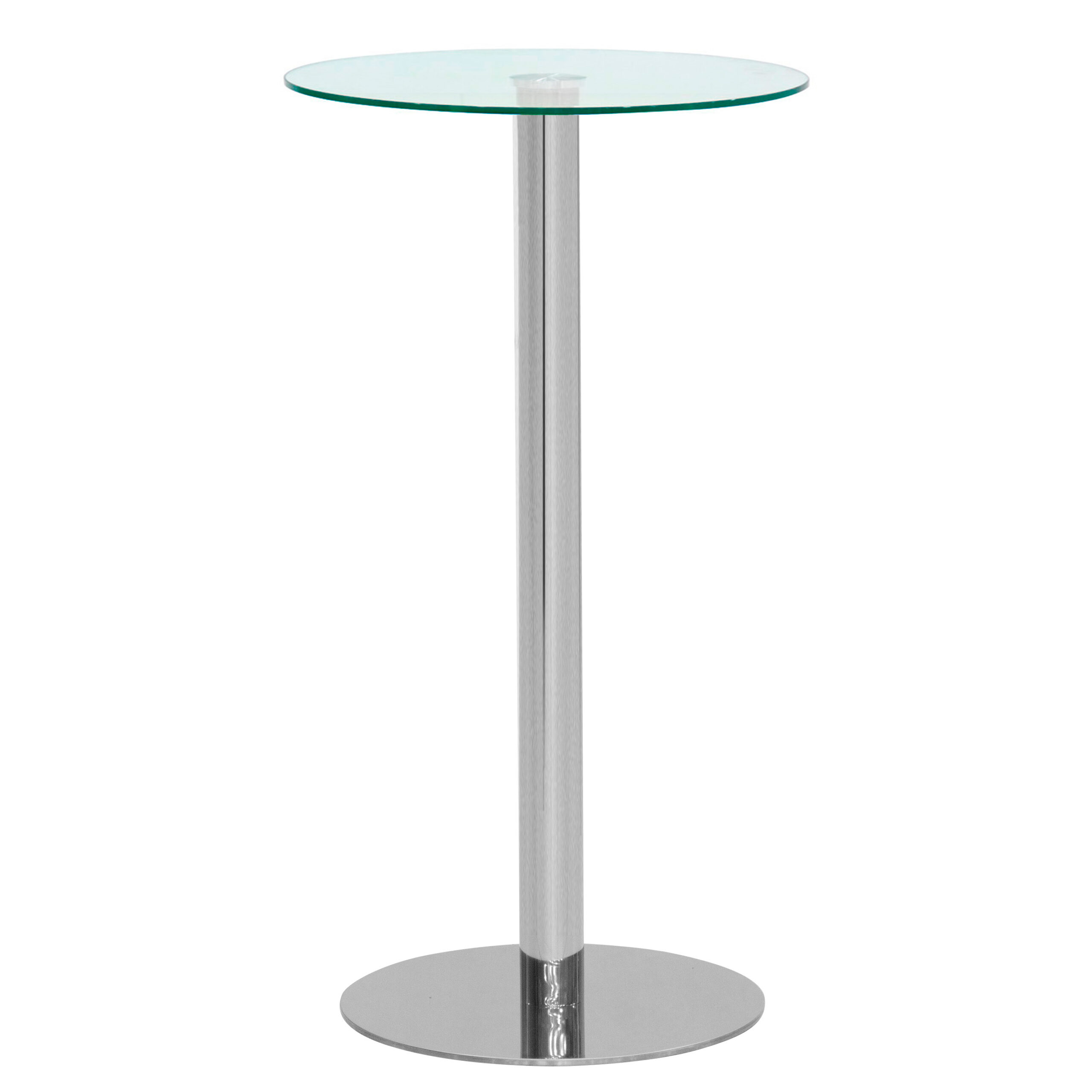 • tavolino alto H. 1.10 con piano in vetro di diametro 60 cm.