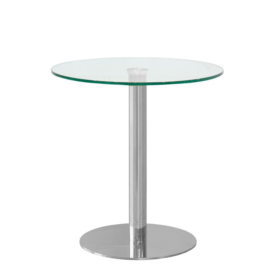 Tavolino con piano in vetro temperato spess. 12 mm, e struttura in acciaio cromato. Disponibile in due misure.