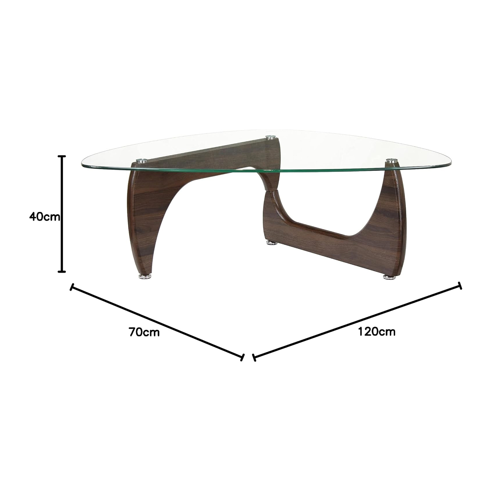 Replica del Coffee Table di Isamu Noguchi, il tavolino è caratterizzato da due gambe in fibra di legno colore noce, posizionate ad angolo retto per assicurare il supporto stabile del robusto top in vetro. Grazie alla sua forma organica si presenta moderno e decisamente versatile per potere essere posizionato in qualsiasi ambiente, dal più classico al più contemporaneo. Dimensioni: 120 x 70 x 40h (cm)