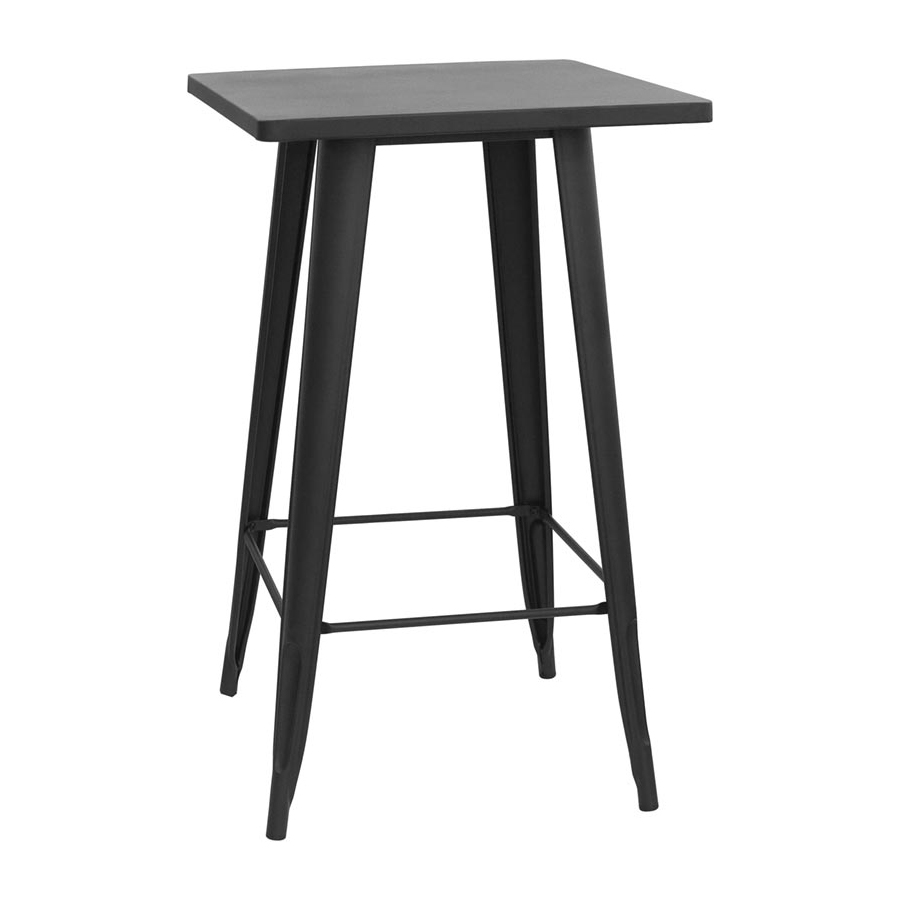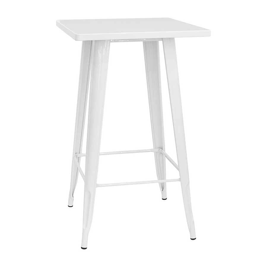 Tavolo alto con struttura in metallo verniciato nei colori bianco e nero.