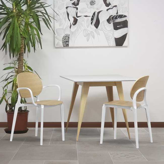 Tavolo con struttura in legno multistrato e piano in MDF laccato bianco