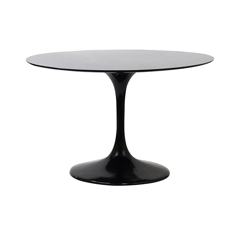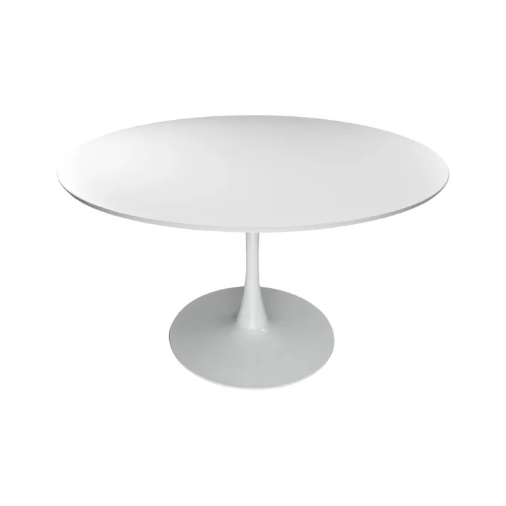 Tavolo rotondo replica del Tulip disegnato da Eero Saarinen, quattro posti. Il piede vintage, rivestito con vernice epossidica, conferisce grande resistenza, soprattutto in caso di urti durante gli spostamenti o di movimenti bruschi. Piano dallo spessore di 2 cm in MDF laccato. Disponibile nei colori bianco e nero.